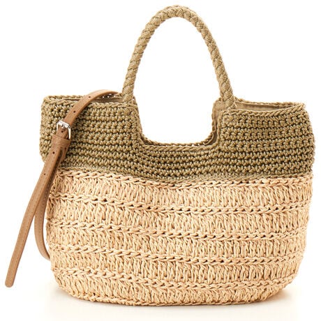 カシュカシュ cache cache / 切り替え柄編みミニトート カゴバッグ