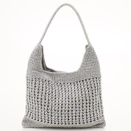 メタリックヤーンを丁寧に編み込んだ1本手トートバッグ。