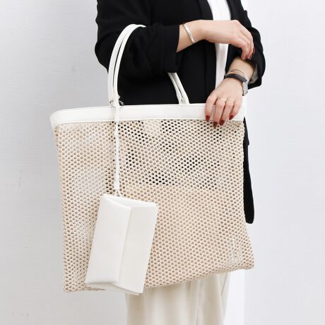 涼しげなメッシュ素材を使用したスクエア型手提げトートバッグ。