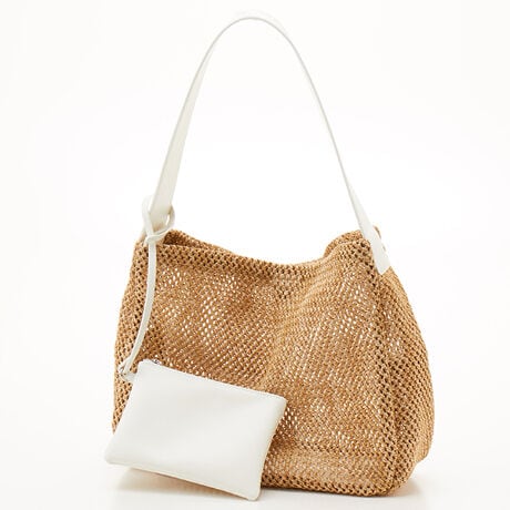天然素材風の透かし編みが涼し気な印象のホーボーバッグ。