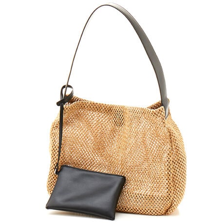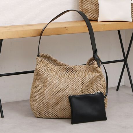 天然素材風の透かし編みが涼し気な印象のホーボーバッグ。