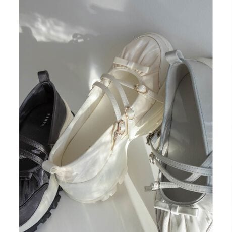 トゥシューズのようなデザインをボリュームソールにドッキングしたスニーカー。