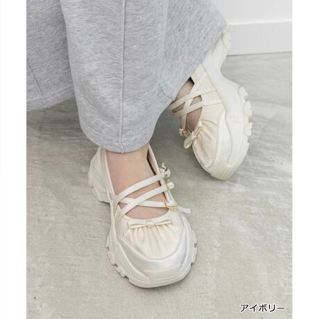 トゥシューズのようなデザインをボリュームソールにドッキングしたスニーカー。