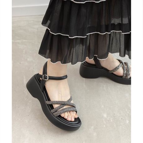 歩く度にキラキラと輝く繊細なビジューを贅沢にあしらったスポーツサンダル。