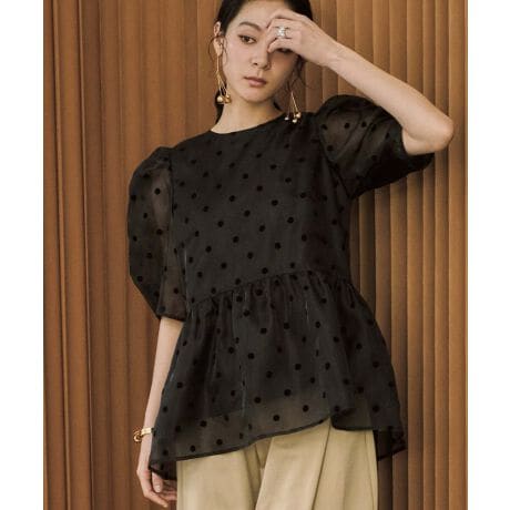 【2026SS】ドットシアー パフスリーブ チュニックブラウス
