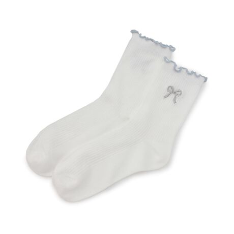 バイカラーのメローデザインで可愛いアクセントを添えたソックスです。
