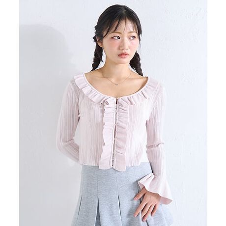 フリルをふんだんに施した春らしいスカシ編みカーディガン