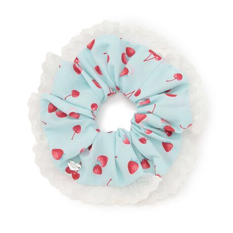 ワンピース(品番:6061307)と同じCherry Berryの総柄プリントを使用したシュシュです。ぐるっとあしらったレースフリルで華やかな雰囲気を演出。ヘアアレンジにはもちろん、アクセサリー感覚で腕につけてもおしゃれに決まります。お母さまがお子さまとお揃いにできる、可愛いものが好きな大人の方へもおすすめの商品です。