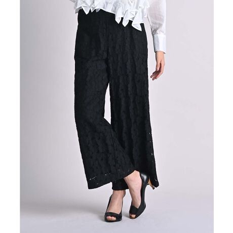 表情豊かな刺繍レース生地で仕立てた、ワイドストレートシルエットのパンツ。繊細な柄行きがありながら、直線的なラインに落とし込むことで、甘さを抑えた大人のバランスに仕上げている。