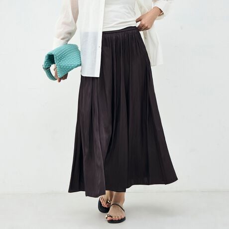 ウォッシャブル割織サテンギャザースカート