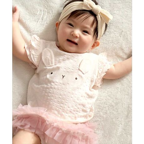 [型番:31343107]【綿100%】Si・Shu・Non(シシュノン)の「フリルTシャツ」は、袖のフリルとさりげないキャラデザインがポイント!柔らかいやさしいジャガード天竺素材です。ブルマとセットでギフトや出産祝いにもおすすめです。