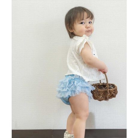 [型番:34343110]【綿100%】Si・Shu・Non(シシュノン)の「フリルブルマ」は、おしりのチュールフリルがとってもキュートなデザイン!Tシャツとセットでギフトや出産祝いにもおすすめです。