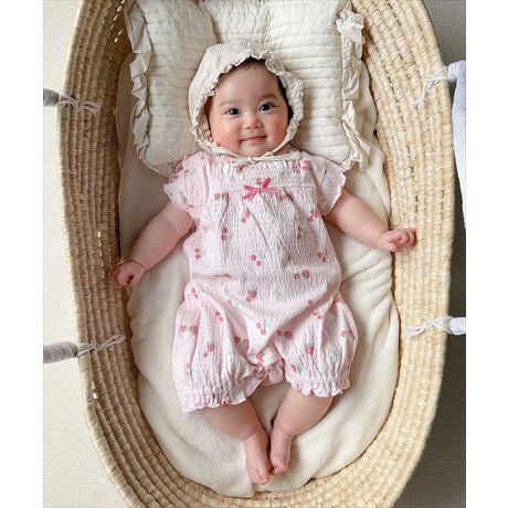 [型番:35343117]Si・Shu・Non(シシュノン)の「フルーツガラロンパース」はフルーツ総柄に袖のフリルがかわいいデザイン!柔らかいやさしいジャガード天竺素材で、股下の中心はお着替えしやすいよう配色ボタンです。ギフトや出産祝いにもおすすめです。
