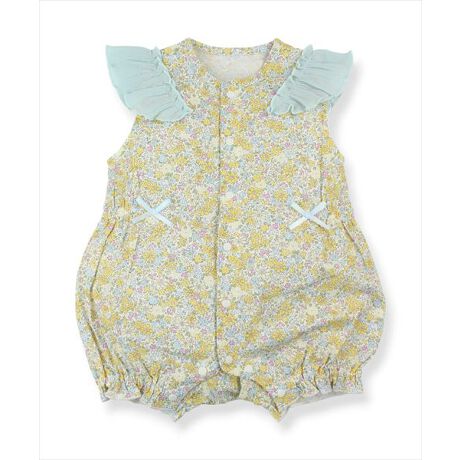 [型番:35343118]【綿100%】Si・Shu・Non(シシュノン)の「オハナガラロンパース」はおはな総柄と袖フリルがキュート!股下の中心はお着替えしやすいよう配色ボタンです。ギフトや出産祝いにもおすすめです。