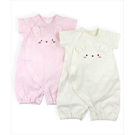 【綿100%】Si・Shu・Non(シシュノン)の「ウサクマ2WAYオール」はさりげないキャラが可愛い!柔らかいやさしいジャガード天竺素材で、股下の中心はお着替えしやすいよう配色ボタンです。ギフトや出産祝いにもおすすめです。