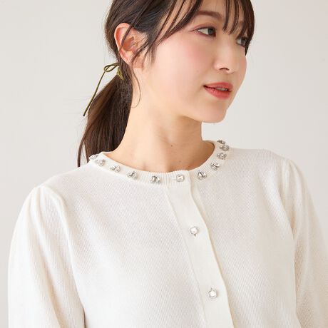 ・上品な煌めきが季節の変わり目に重宝するビジューが上品なカーディガン