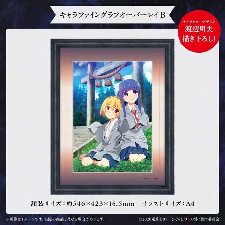 [型番:4573409345264]「ひぐらしのなく頃に 業/卒」よりキャラクターデザイン渡辺明夫描き下ろしイラストがプレミアムな額装アートになりました。高品質なキャラファイン印刷を施したイラストと、特別なデザインを施した額装をお楽しみください。<キャラファイングラフオーバーレイとは>高品位美術印刷技術により美しい発色でイラストを高品質・高精細に再現。また、額縁のアクリル面材にフルカラー印刷をすることで立体的な表現を施したプレミアムな逸品です。