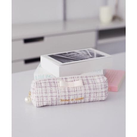 立体的なツイード素材に、ミニリボンをあしらったロングポーチ。