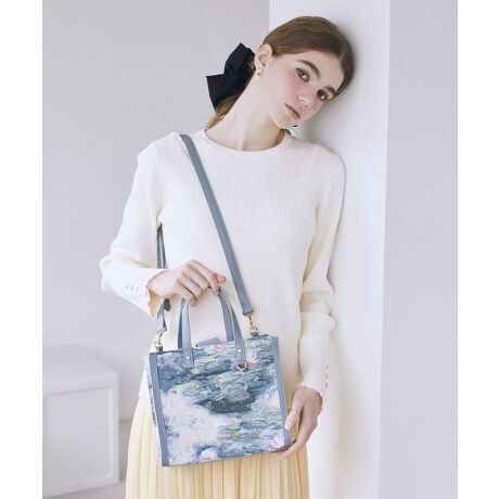 モネがキャンバスに描いた、水面や光の揺らぎを繊細に表現した総柄のゴブラン生地が魅力の2WAYトートバッグ。