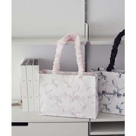 【08001390100】リボン柄ギャザーハンドルスクエアトート