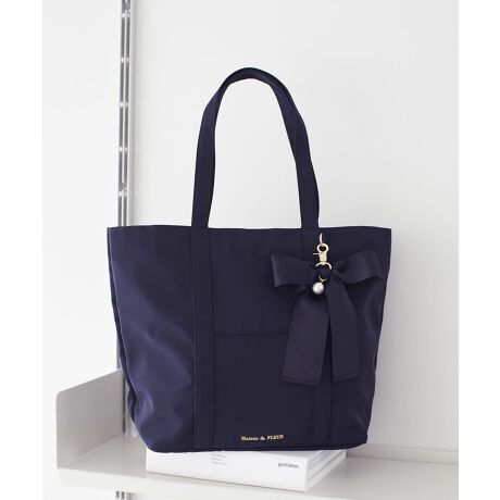 【08001390000】リボンチャーム付きマルチポケットトートバッグ