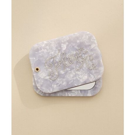 高級感のあるアセチ素材に、ラインストーンロゴをあしらい、大人可愛いデザインに仕上げたスライドミラー。