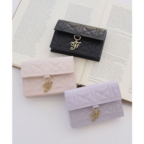 レザー調のキルティング素材に、「F」チャームをあしらった上品なカードケース。