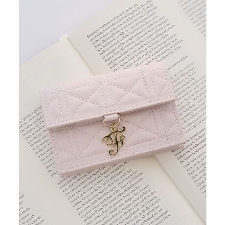 レザー調のキルティング素材に、「F」チャームをあしらった上品なカードケース。