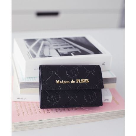 リボンやバラのモチーフを落とし込んだ、オリジナルのモノグラム柄を使用したカードケース。