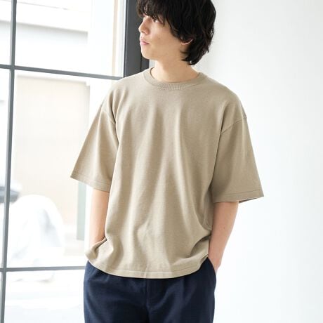 春夏にぴったりの機能性を備えた、カットソー感覚で着られるニットTシャツ