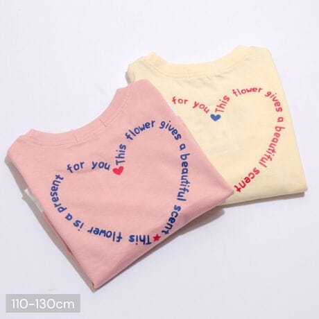 フロントやバックに英字メッセージとハートモチーフをデザインし、シンプルながら可愛さをプラス。