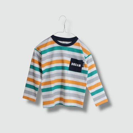 カラフルなボーダーと手書き風のボーダーの2種のボーダープリントの長袖Tシャツです。