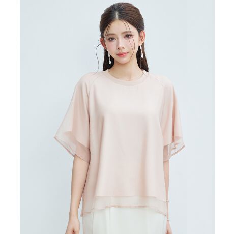 一枚で映えるオーガンジー生地とカットソー生地を切り替えたラグランTシャツ。