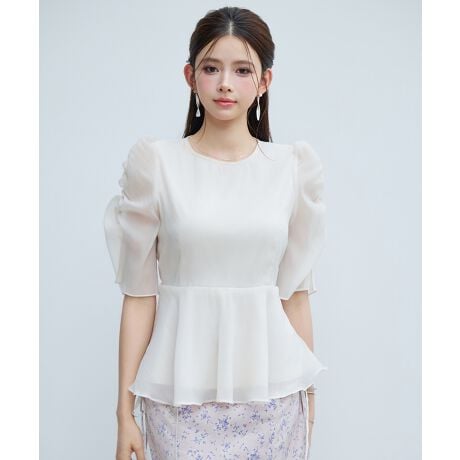 ほんのり透け感やペプラムシルエットが女性らしい楊柳オーガンジーのブラウス。