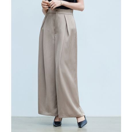立体感のあるシワ加工サテン生地のタックワイドパンツ。