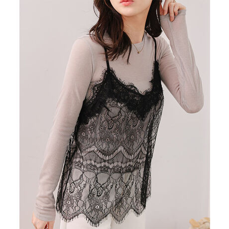 レースインナーとしてトップスからのぞかせたり、レーストップスとしてビスチェ風に重ねたり様々な着こなしを楽しめる大人気のレースキャミです◎