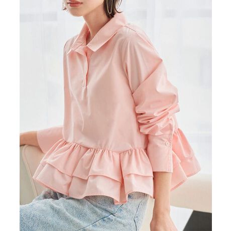 裾のふんわり広がるフリルが華やかさを添える長袖ブラウス。