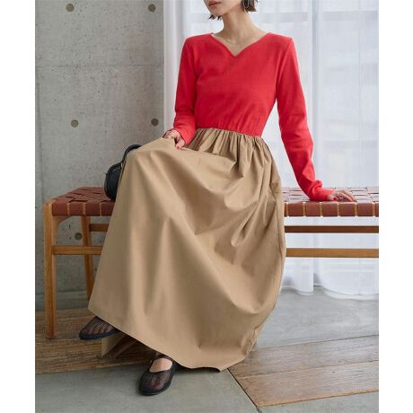 一枚でメリハリをもたらせてくれる異素材ドッキングワンピース。