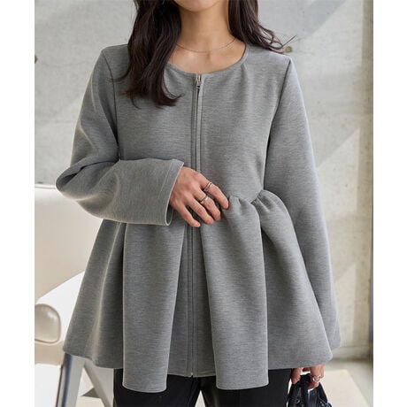 女性らしさあふれるペプラムジップブルゾン。