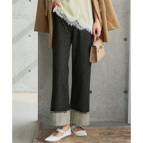 折り返した裾からのぞくストライプ柄が、さり気ないアクセントになるストレッチデニム。