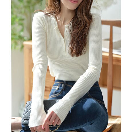 ヘンリーネックリブニットトップス [N1321]