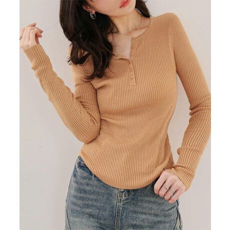 フロントボタンの開け具合で抜け感や表情の変化も楽しめる万能カットソーです。