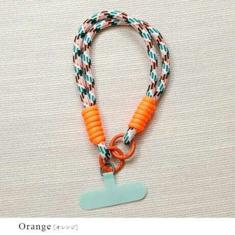 アウトドア感のあるパラコード素材を使ったカラフルなストラップ。