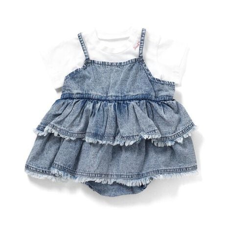 BREEZE(ブリーズ)のカバーオール・ロンパース「【リンク】デニムボディーオール&Tシャツ_2点セット」は、小さいお洋服にこだわりを詰め込んだ大人顔負けのデザインが人気!出産祝いのギフトにもおすすめです♪