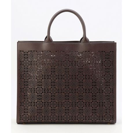 ■デザインオリジナルのレース柄をレーザーカットで表現したトートバッグです。A4サイズも収納可能な、シンプルで使いやすいスクエア型に、全面レース柄をあしらった上品なデザインです。荷物をガードできる、安心のロゴ付き巾着袋が付属します。(本体には取り付けられていません。)