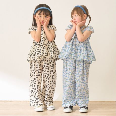 【セットアップ】アソート総柄ティアードブラウス・スカラップパンツセット