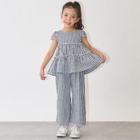 カラバリ豊富なティアードブラウスとスカラップパンツのセット。