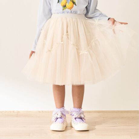 ふんわり広がるシルエットがかわいいチュールスカート。