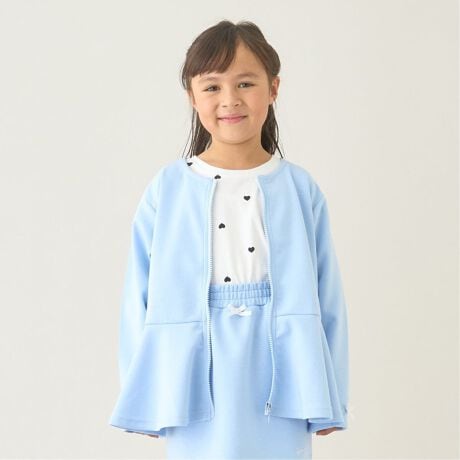 ふんわり広がるペプラムシルエットがかわいいフルジップトップス。