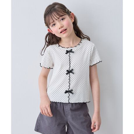ANY KIDS/エニィキッズ/any FAM/any FAM KIDS/エニィファム/エニィファムキッズ/キッズ/トップス/半袖/Tシャツ/ドット/水玉/モノクロ/リボン/メロー/通園/通学/おでかけ/デイリー/女の子/ガール/サスティナブル商品/トレンド